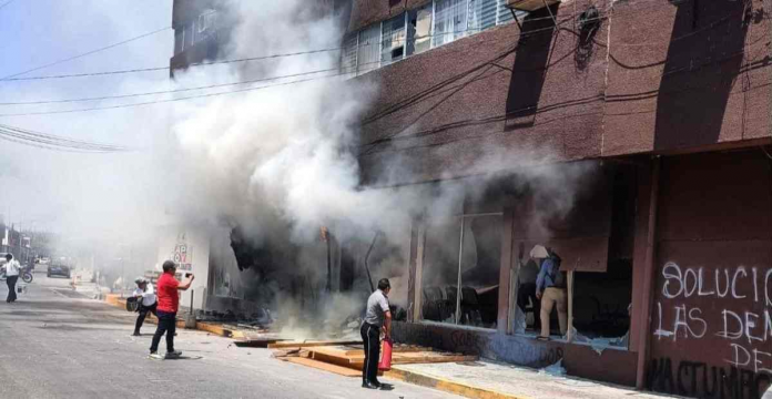 Testigos del hecho señalaron que algunos de los que participaron en este acto vandálico se identificaron como normalistas, aunque hasta el momento ningún grupo se ha adjudicado el ataque al edificio gubernamental.