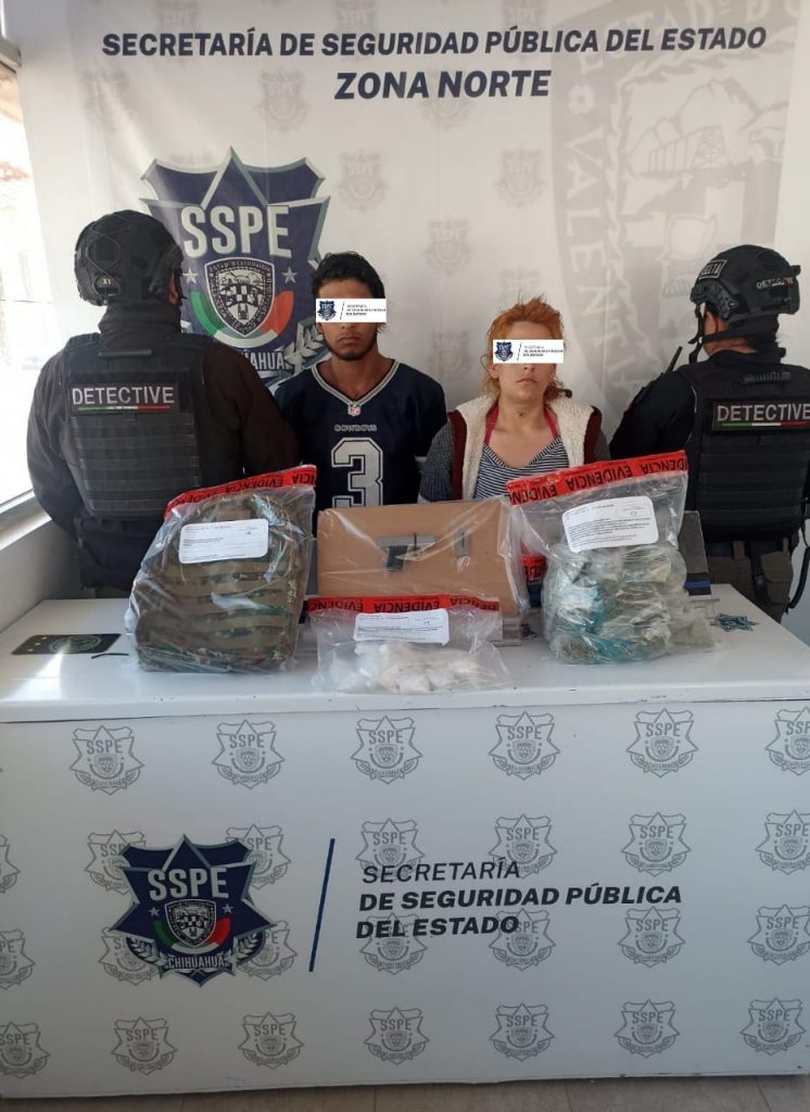 Finalmente, la SSPE detuvo a una pareja que forcejeaba por una mochila, encontrando en su interior 11 envoltorios plásticos con un total de 580 gramos de presunto cristal, así como 20 envoltorios con un total de 1.15 kg de marihuana. Además, los sujetos identificados como Jaime T. R. y Leslie Judith R. L.  portaban un arma de fuego tipo pistola calibre .25 y un cargador abastecido con cartuchos útiles del mismo calibre, motivo por el fueron detenidos.La Secretaría de Seguridad Pública del Estado (SSPE) llevó a cabo todas estas detenciones mediante labores de videovigilancia, investigación y patrullaje, con el objetivo de mantener la seguridad ciudadana. En todos los casos, los detenidos fueron puestos a disposición de la autoridad correspondiente.