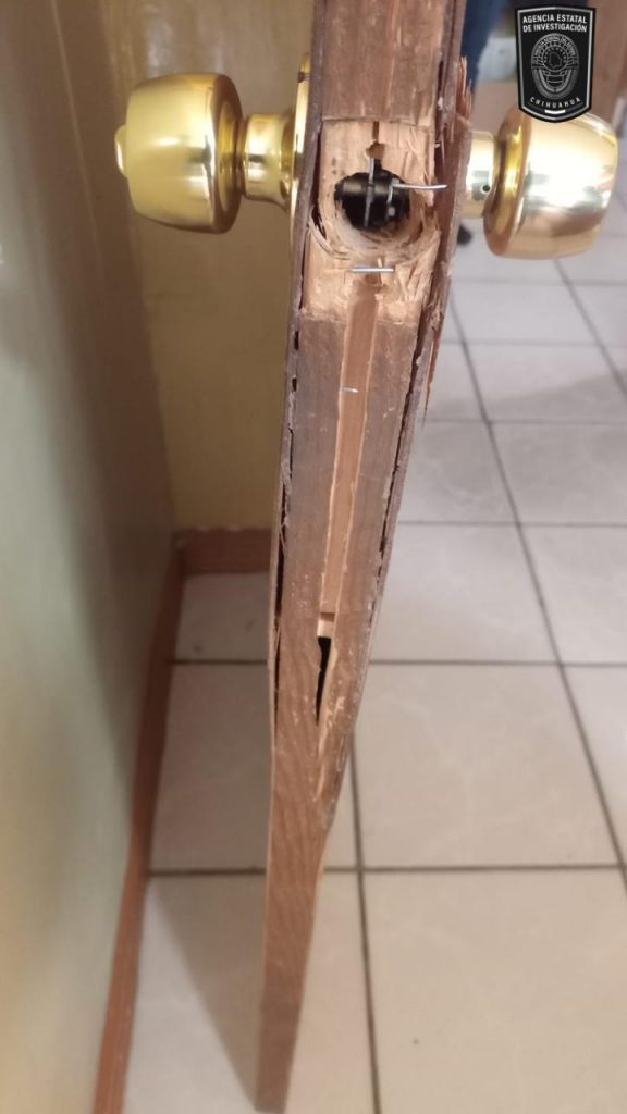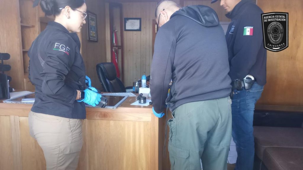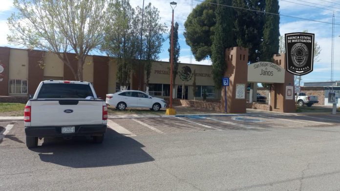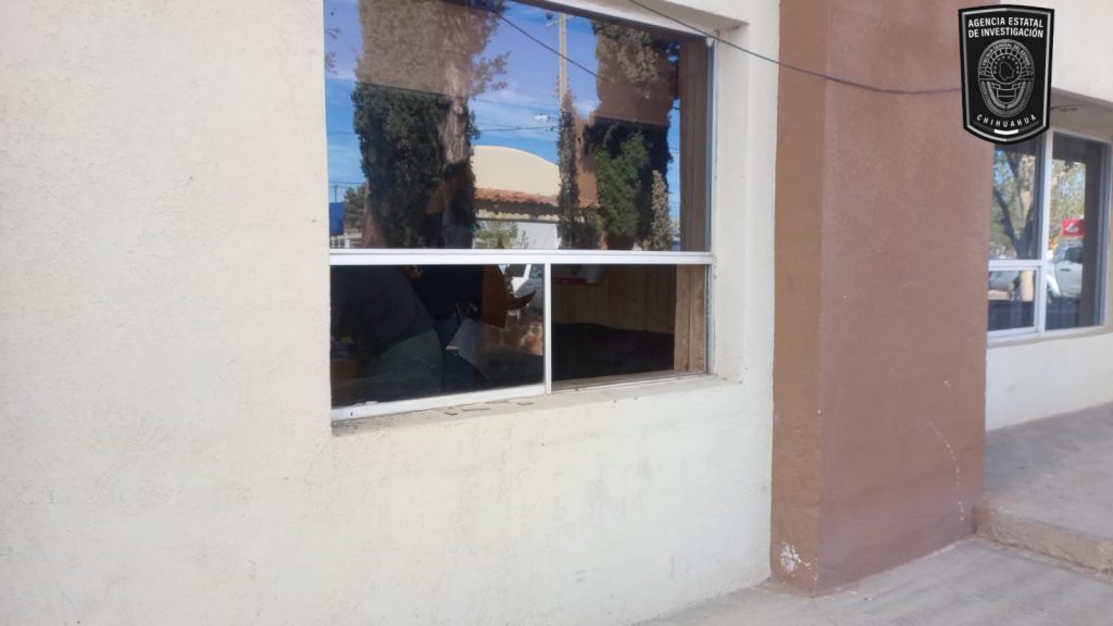 Elementos de la Agencia Estatal de Investigación, de la Fiscalía de Distrito Zona Noroeste, atendieron una denuncia por daños en el edificio de la Presidencia Municipal de Janos, durante la mañana de este viernes cinco de abril.