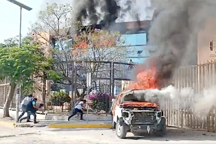Un total de 13 vehículos fueron incendiados, 12 en el estacionamiento y otro en el acceso principal del Palacio.