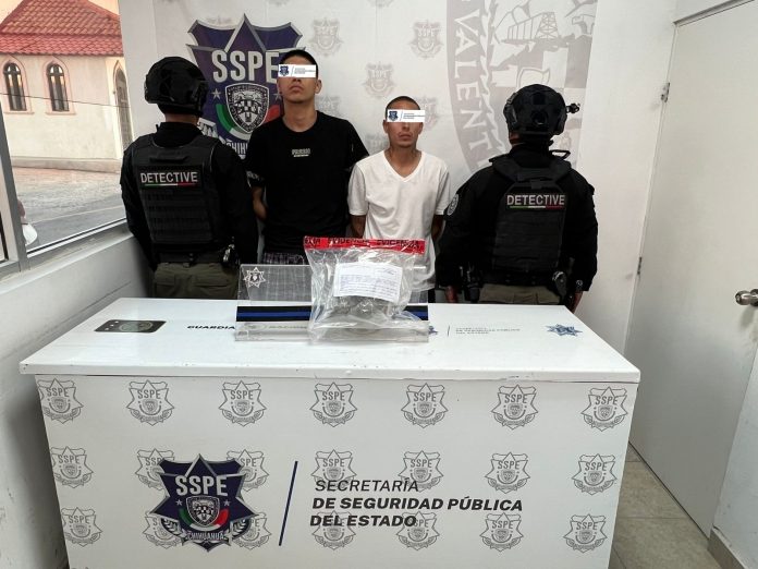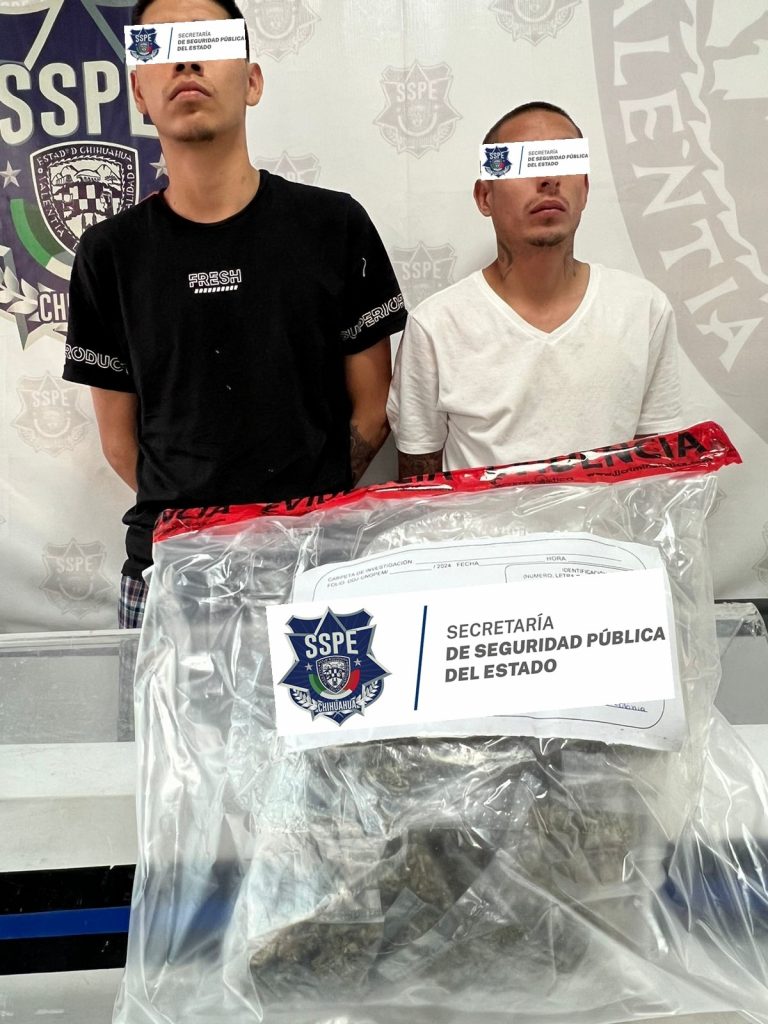 En base a los trabajos de videovigilancia y seguridad implementados en Ciudad Juárez, la Secretaría de Seguridad Pública del Estado (SSPE), detuvo a 2 masculinos, identificados como Edgar Ghovanny B. M. de 22 años y Luis Adalberto T. G. de 21 años, a quienes se les aseguraron 295 gramos de presunta droga.