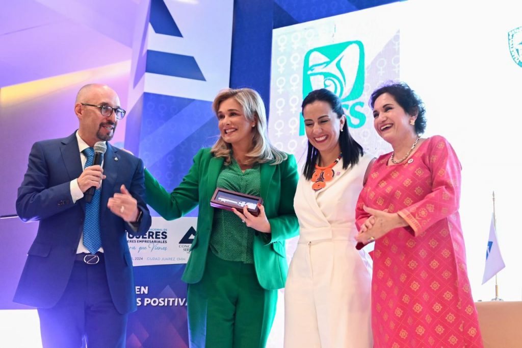 En el marco de la inauguración del Segundo Congreso Internacional de Mujeres y Líderes Empresariales, la Gobernadora del Estado fue condecorada con los reconocimientos “Rompiendo el Techo de Cristal” y “La Llave del Comercio”, por sus acciones a favor del sector empresarial.