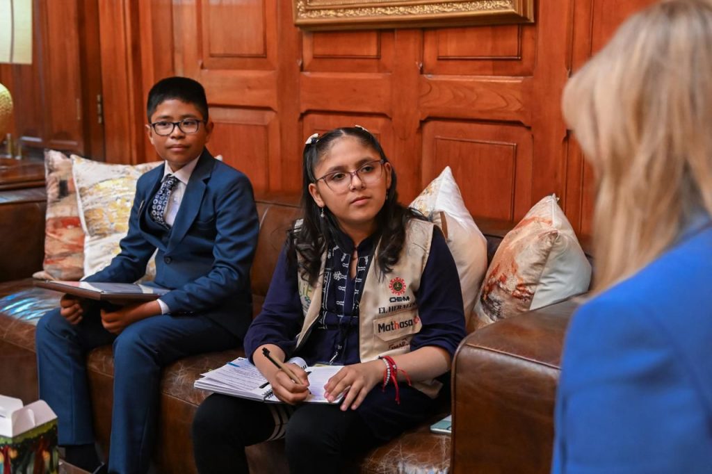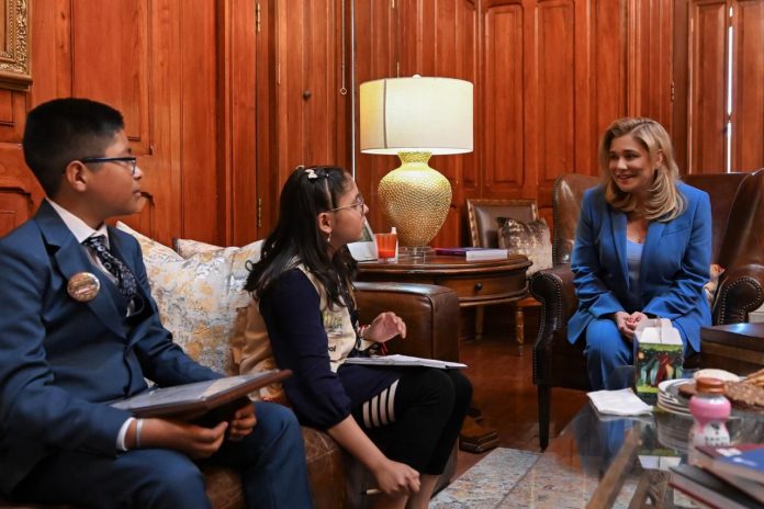 La Gobernadora del Estado y el Gobernador Infantil, Jesús Molina Mendoza, sostuvieron una plática con Valentina Vega, la reportera infantil de El Heraldo de Chihuahua, como parte de las actividades para celebrar el Día de la Niñez.