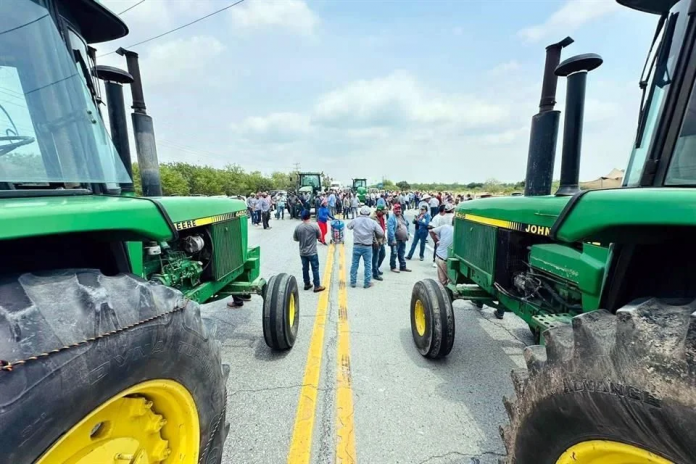 Con tractores, trilladoras y maquinaria agrícola, cientos de productores cerraron la Carretera Victoria-Matamoros, a la altura de San Fernando, para exigir el precio justo por tonelada de granos, como el sorgo.