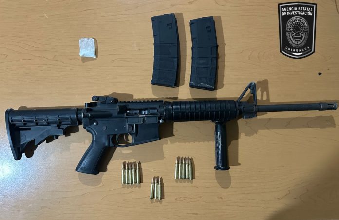 Elementos de la Agencia Estatal de Investigación adscritos a la Fiscalía de Distrito Zona Noroeste, arrestaron en los términos de la flagrancia al masculino identificado como Kevin R. M., por los delitos de posesión ilegal de arma de fuego y contra la salud, en el municipio de Ascensión.