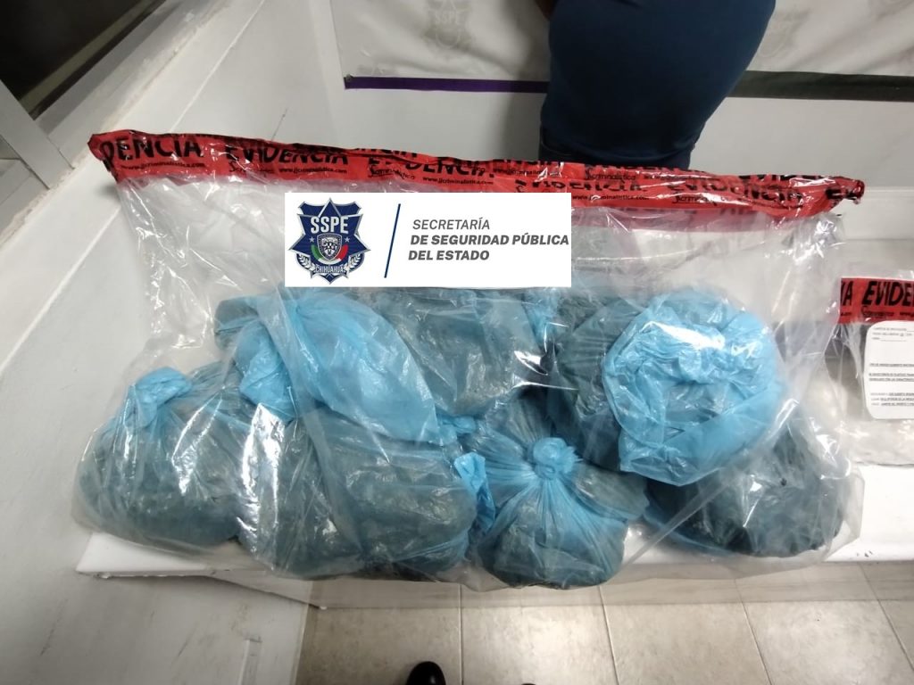 Durante la revisión, los agentes aseguraron en las pertenencias del sujeto, 8 paquetes plásticos de color azul, con la hierba antes mencionada, asimismo se le aseguraron 6 envoltorios plásticos que contenían la presunta droga con las características similares al “cristal”.Estos hechos derivaron en la formal detención de sospechoso, quien fue puesto a disposición de la Fiscalía General del Estado (FGE) para dar continuidad a las investigaciones correspondientes del hecho.