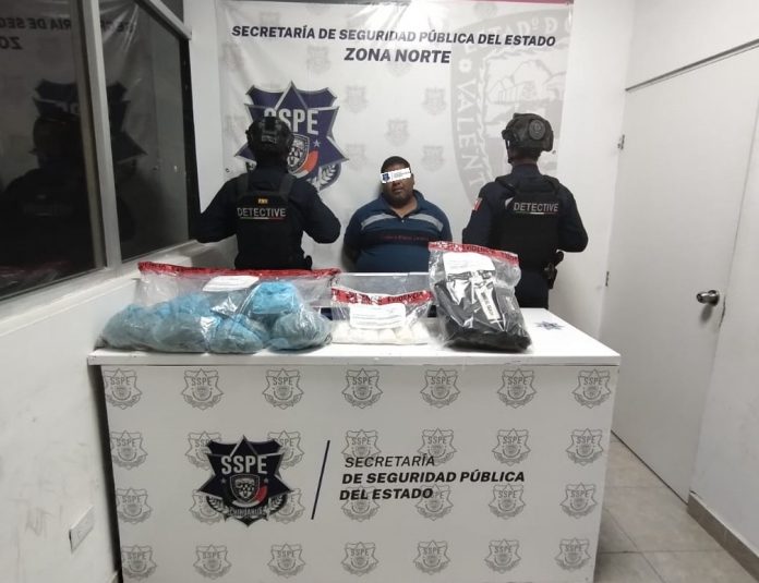Elementos del Grupo Especial de Detectives de la SSPE arrestaron en calles de ciudad Juárez a José Alberto R. R., de 47 años de edad, a quien se le aseguraron 2.5 kilogramos de presunta marihuana, así como 660 gramos de una sustancia cristalina con las características propias de la metanfetamina.