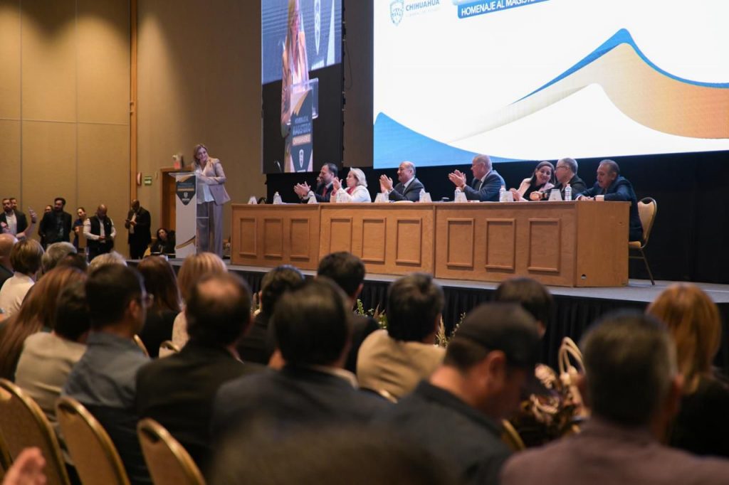 Al encabezar la ceremonia de reconocimiento a cerca de 400 docentes adheridos a la Sección 42, del Sindicato Nacional de Trabajadores de la Educación (SNTE), la Gobernadora del Estado los exhortó a proteger a la sociedad y a la niñez chihuahuense.