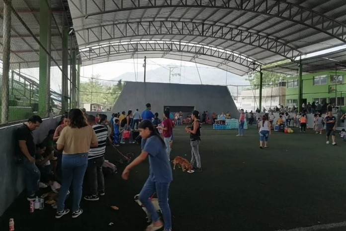 Alrededor están estacionadas las ambulancias que mandó el Gobierno del Estado, y carros de carga con los que dejaron el pueblo. Quienes no tienen a dónde ir permanecerán aquí, Gregorio y su familia dice que dejarán este lugar para irse a otra ciudad.