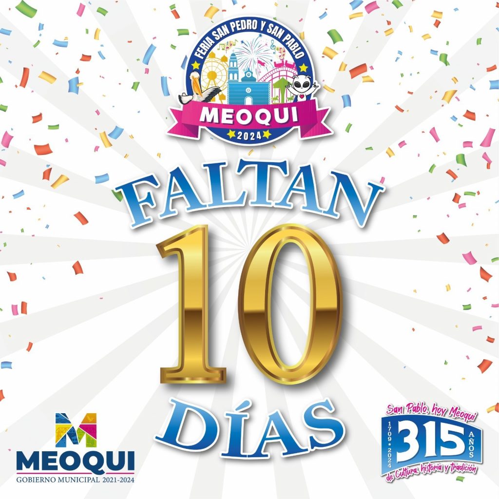 Faltan solo diez días para que dé inicio la Feria San Pedro y San Pablo Meoqui 2024, fiesta máxima de los meoquenses en la cual conmemoran el 315 aniversario de la Fundación del municipio con el certamen de belleza, la tradicional callejoneada, y una gran cartelera dentro del Teatro del Pueblo, encabezada por el artista de talla internacional Edén Muñoz, La Zenda Norteña y Los Vendavales.