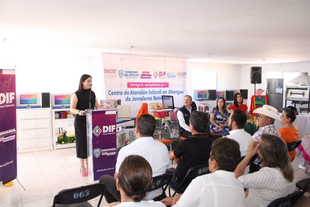 En un significativo esfuerzo coordinado entre el DIF Municipal de Saucillo, el DIF Estatal y el DIF Nacional, la alcaldesa de Saucillo, Aidé López De Anda, encabezó la entrega de equipamiento para el Centro de Atención Infantil del Albergue de Jornaleros Betebachi.