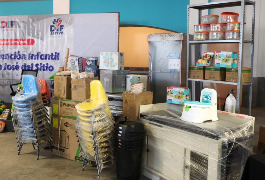 El DIF Estatal entregó mobiliario y equipamiento en los Centros de Atención Infantil (CAI), de San José del Sitio y de la cabecera municipal de Satevó, con el objetivo de garantizar el cuidado y atención de las niñas y niños que ahí son atendidos.