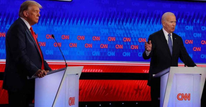 Biden, que a veces sonaba ronco y vacilante, tuvo dificultades con sus palabras en varias ocasiones durante la primera media hora del debate, mientras Trump repetía un ataque tras otro que incluía varias mentiras, entre ellas afirmaciones de que migrantes han llevado a cabo una ola de crímenes y que los demócratas apoyan el infanticidio.