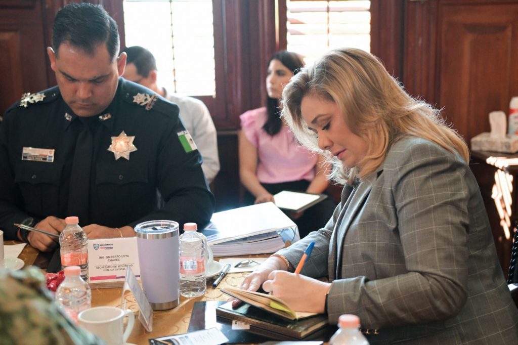 La gobernadora Maru Campos encabezó esta mañana la sesión de la Mesa de Coordinación para la Construcción de la Paz, donde en conjunto con representantes de los tres niveles de Gobierno, analizó la situación que guarda el estado en materia de seguridad.