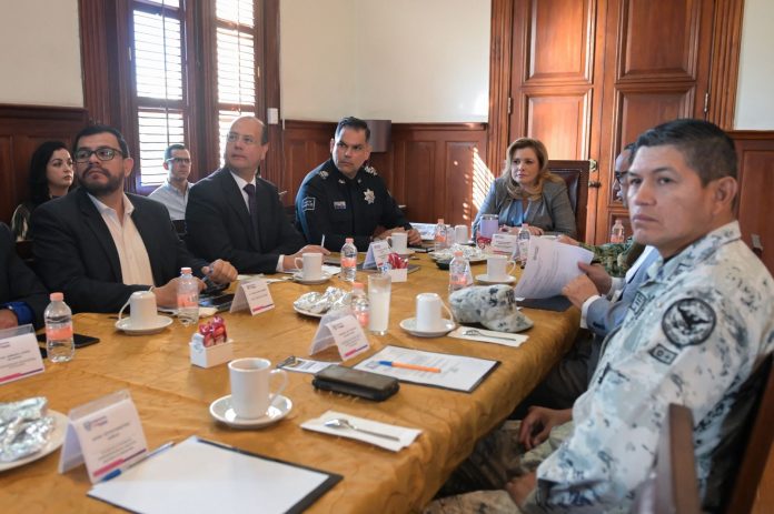 Maru Campos, refrendó el compromiso del Gobierno del Estado para mantener un entorno pacífico, en el que los chihuahuenses puedan vivir libres de violencia.A la reunión asistieron el subsecretario general de Gobierno, Óscar González Luna; el representante en Chihuahua de la Secretaría de Seguridad y Protección Ciudadana, Fernando Ávila; el delegado estatal de la Fiscalía General de la República, Ramón Badillo Aguilar y el comandante de la 42/a, Alejandro Silva.