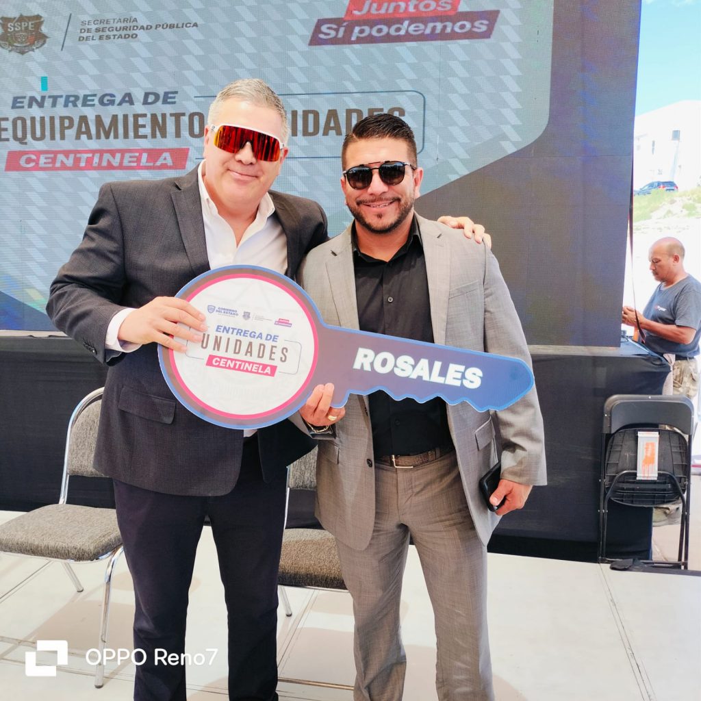 Por parte del municipio de Rosales, asistió el alcalde, el C.P Marcial Márquez Gutiérrez y el director de Seguridad Pública Municipal, Víctor Hugo Soto Flores, quienes agradecieron a la Gobernadora por la entrega de una nueva unidad, uniformes y equipo táctico para los elementos de seguridad pública de Rosales.