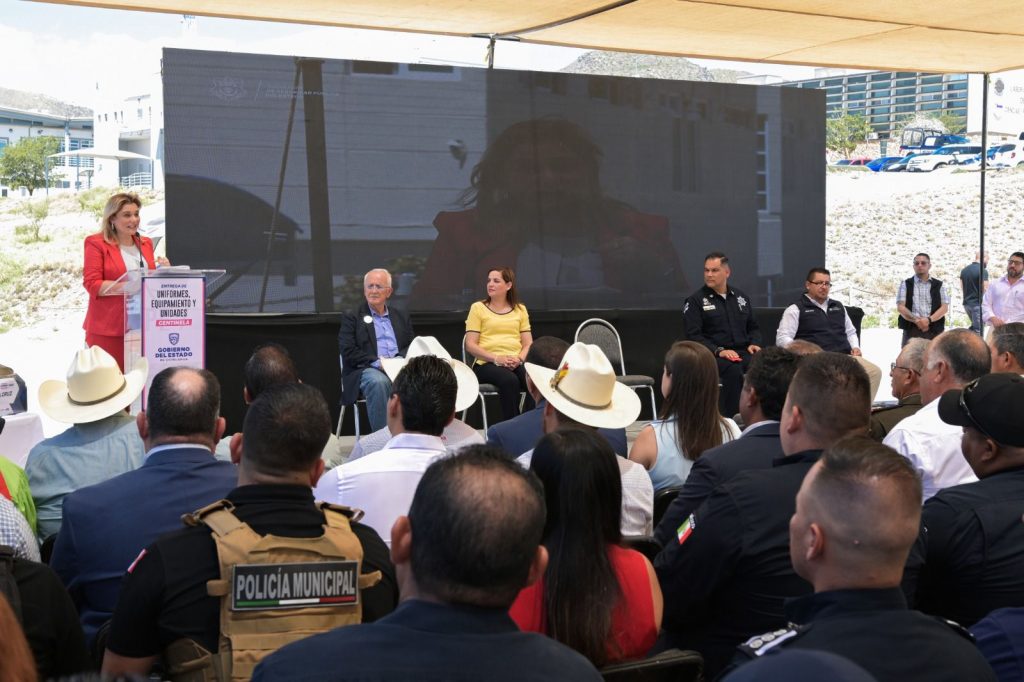 El acto se celebró en las instalaciones del C-7 en la ciudad de Chihuahua, donde la mandataria estatal, resaltó que de esta manera se fortalece a las policías municipales, para que brinden de mejor manera protección a la ciudadanía.