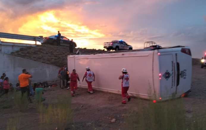 El conductor de un camión de transporte de personal, que llevaba empleados de la Maquiladora Contec Sumitomo desde la región de Delicias y Saucillo hacia Camargo, terminó por salir de la carretera, proyectar contra la valla de contención y finalmente volcar en el arroyo El Colorado.