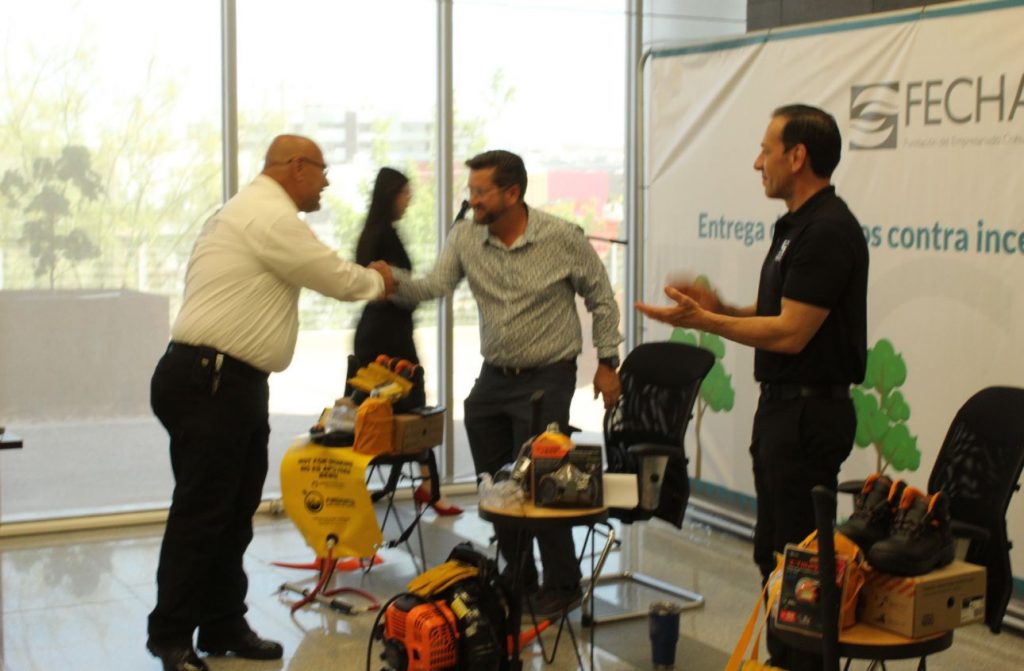 La donación fue realizada por la Fundación del Empresariado Chihuahuense (FECHAC), cuya directiva, encabezada por Luis Alberto Barrio, señaló que está específicamente destinado para el combate de incendios forestales.