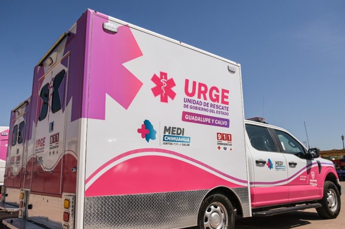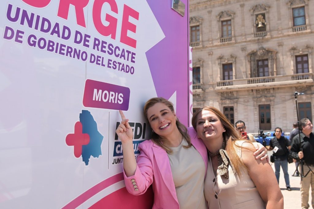La gobernadora Maru Campos encabezó en la Plaza del Ángel la ceremonia de entrega de 23 nuevas ambulancias, adquiridas con una inversión de 44 millones 396 mil pesos para reforzar el servicio que brinda la Unidad de Rescate de Gobierno del Estado (URGE) en los municipios.