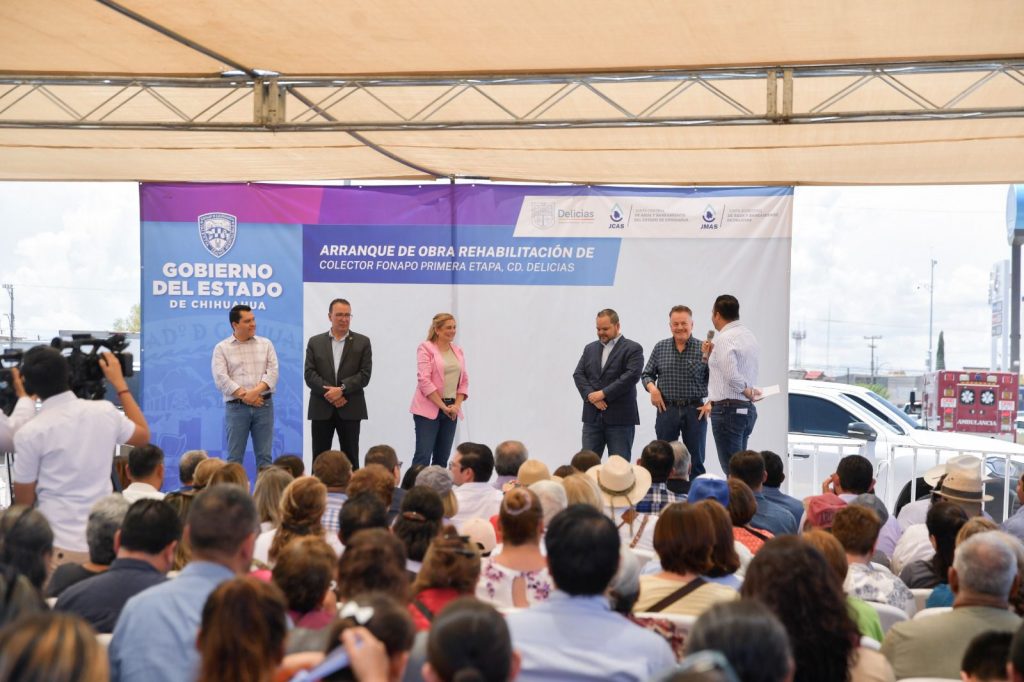 La gobernadora Maru Campos, dio el arranque formal a la primera etapa de la obra de rehabilitación del colector Fonapo en Delicias, que mejorará las condiciones del sistema de alcantarillado y saneamiento, en beneficio de 21 mil 220 habitantes de cuatro colonias.