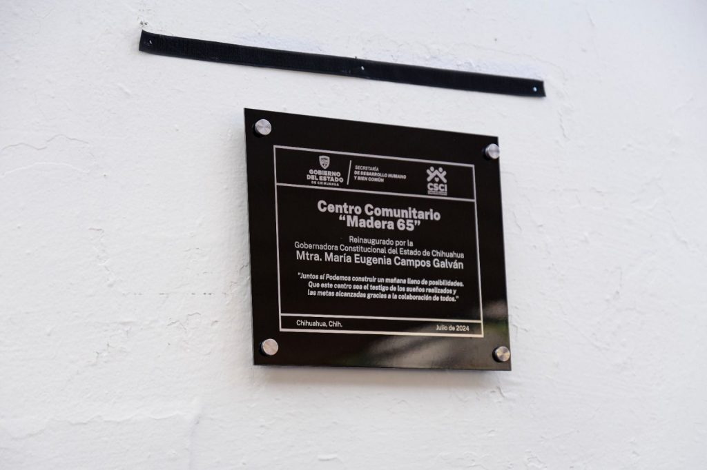 La gobernadora Maru Campos encabezó la reinauguración del Centro Comunitario Madera 65 en Chihuahua capital, mismo que se suma a otros 40 centros que operan de manera simultánea en la entidad.