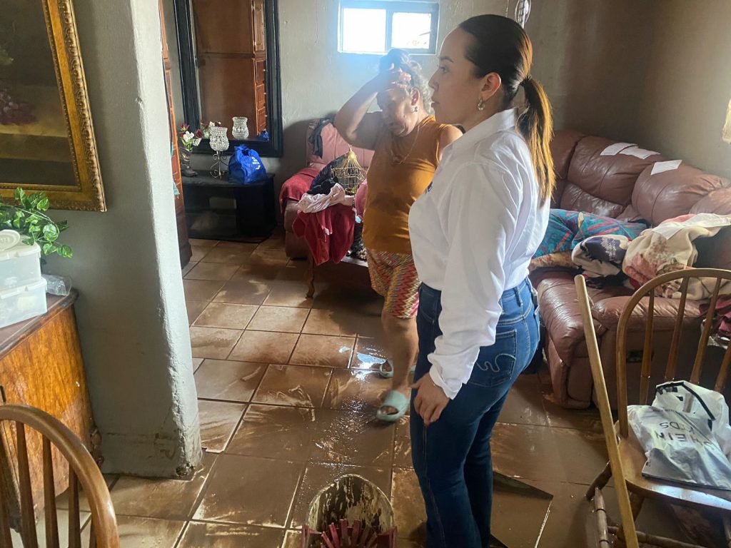 La alcaldesa de Saucillo, Aidé López De Anda, visitó personalmente la comunidad de Orranteño, luego de que esta fuera una de las zonas más afectadas por las intensas lluvias del lunes 22 de julio. La gran cantidad de agua provocó inundaciones en varias viviendas de la localidad.