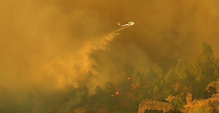 Un avión para incendios sobrevuela el siniestro haciendo un mapa de la superficie, lo que permitirá actualizaciones periódicas del siniestro, indicó Cal Fire en su página.