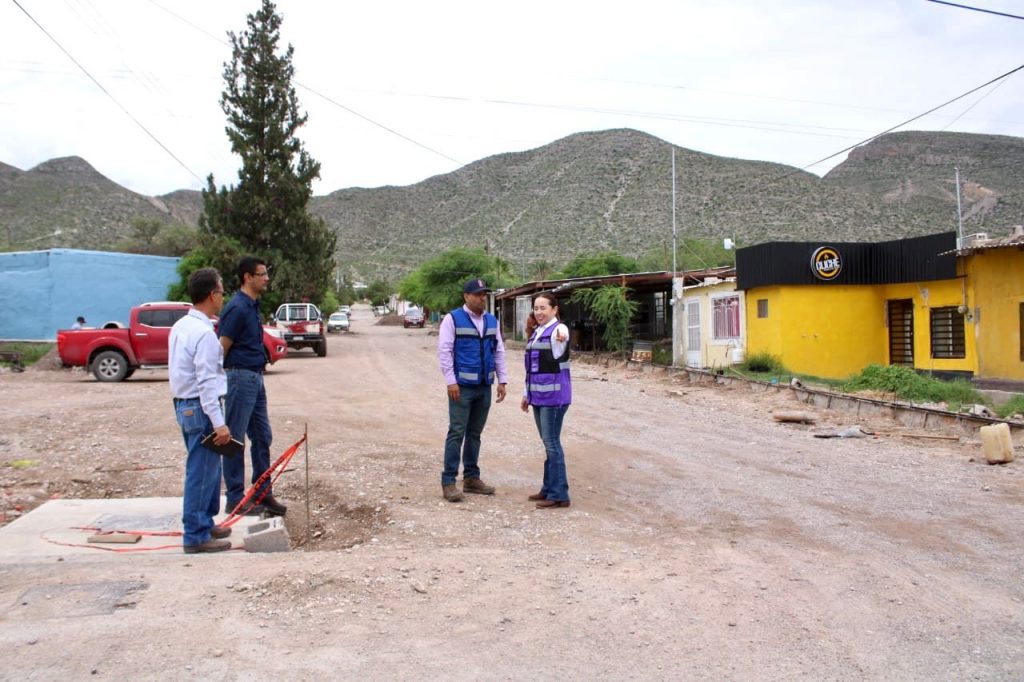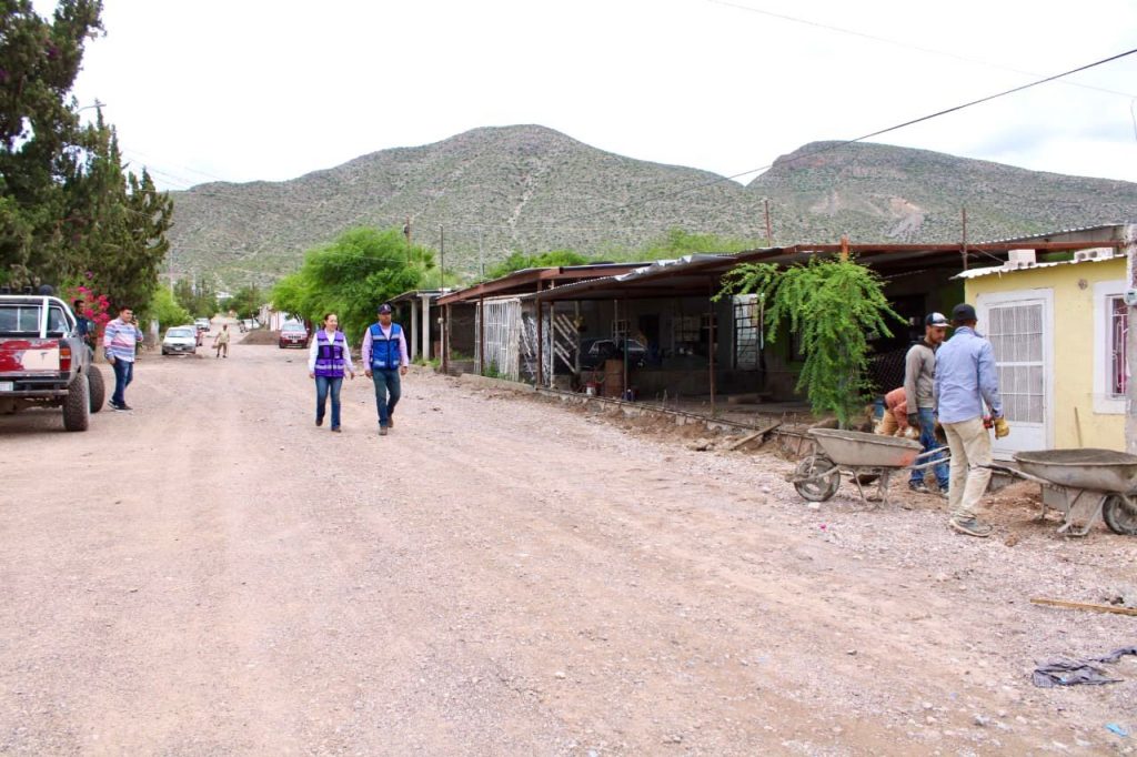 Durante el recorrido, la alcaldesa López De Anda y el Ing. Gómez inspeccionaron los trabajos en curso, los cuales incluyen la rehabilitación de la línea de agua con tubería de 8 pulgadas, la rehabilitación de tomas domiciliarias, el tratamiento del terreno natural y la construcción de una base con material producto de banco.