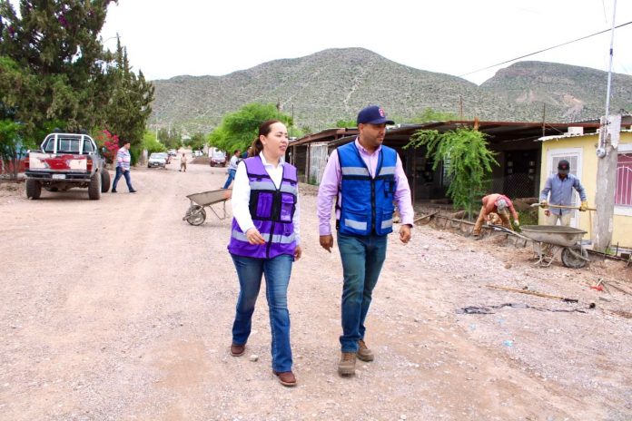 La alcaldesa de Saucillo, Aidé López De Anda, acompañada por el director de Obras Públicas, el Ingeniero José Alberto Gómez, realizaron un recorrido para supervisar el avance de la obra de pavimentación asfáltica en la calle Ramírez, entre la Avenida Juárez y la Avenida Morelos, en la comunidad de Naica.