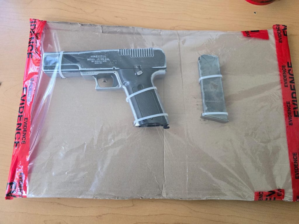 Posteriormente los oficiales detectaron que uno de ellos portaba el arma de fuego fajada a la cintura, por lo que se procedió a su arresto.