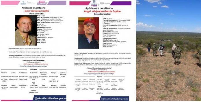 Izmir Contreras Castillo es originario del municipio de Saucillo y fue reportado como desaparecido el 08 de agosto del presente año en la ciudad de Parral, mientras que Ángel Alejandro García Espino, originario de Ciudad Juárez, desapareció el 05 de agosto en Jiménez.