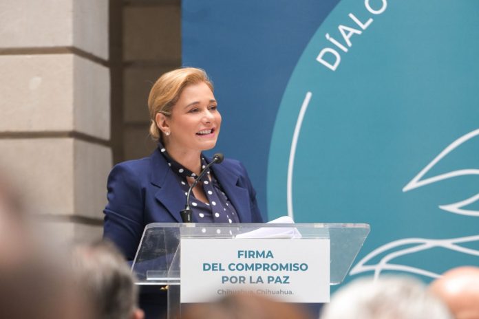 Durante la firma del Compromiso por la Paz Capítulo Chihuahua, efectuado en el marco de los Diálogos Nacionales por la Paz, afirmó que su intención es reconstruir el tejido social, mejorar la seguridad y la justicia, dignificar las condiciones de las cárceles, acompañar a las juventudes, atender la migración y fortalecer la gobernanza en la entidad.