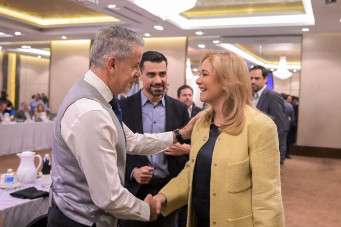 Ante cerca de 40 socios y aliados del organismo privado, la mandataria compartió los proyectos prioritarios que se planean para impulsar la economía en la región fronteriza.