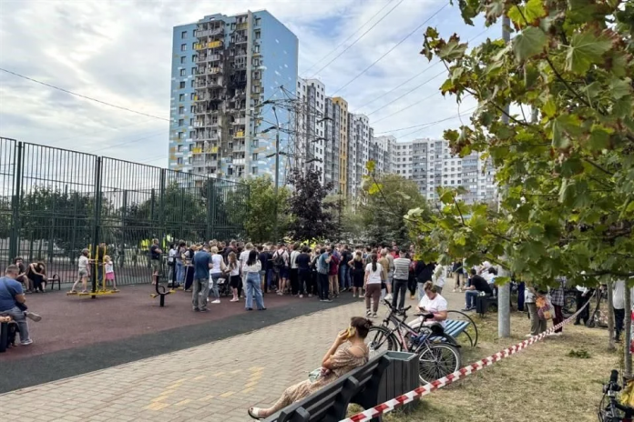 Georgy, un residente que no quiso dar su apellido, dijo que escuchó un zumbido de un dron fuera de su edificio en las primeras horas.