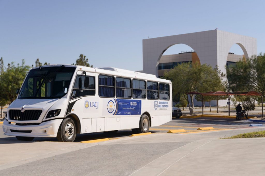 La Gobernadora Maru Campos aseguró que la educación de los estudiantes de la Universidad Autónoma de Ciudad Juárez, avanza sobre ruedas con la llegada de 36 unidades nuevas del Indio Bus.