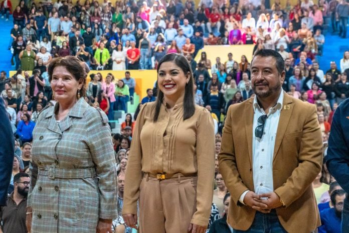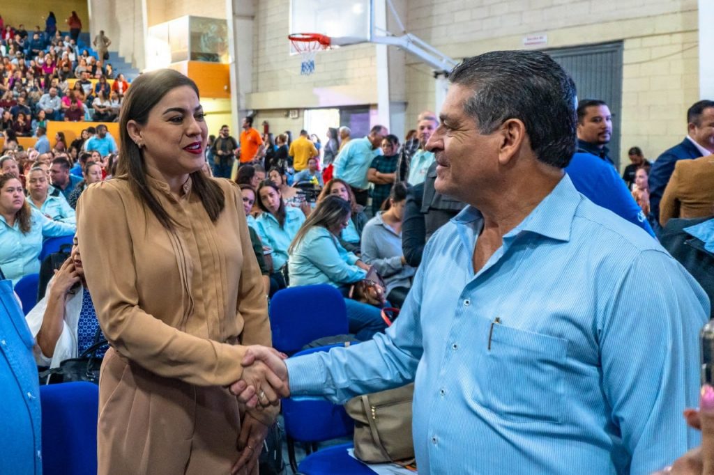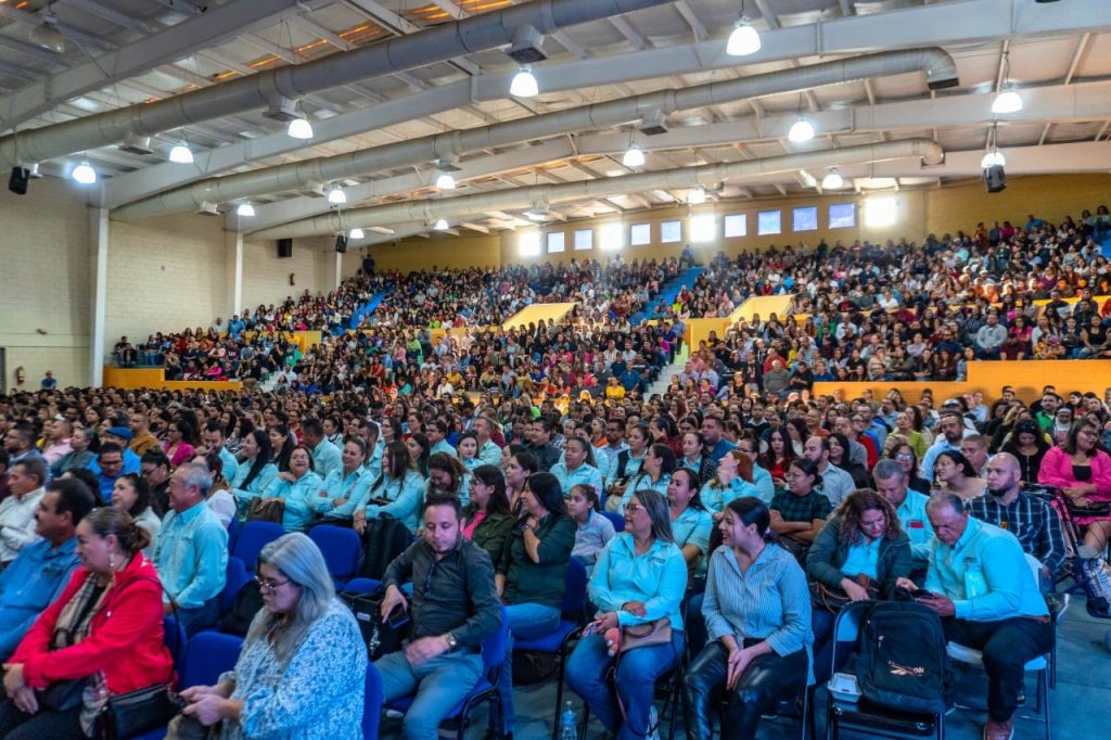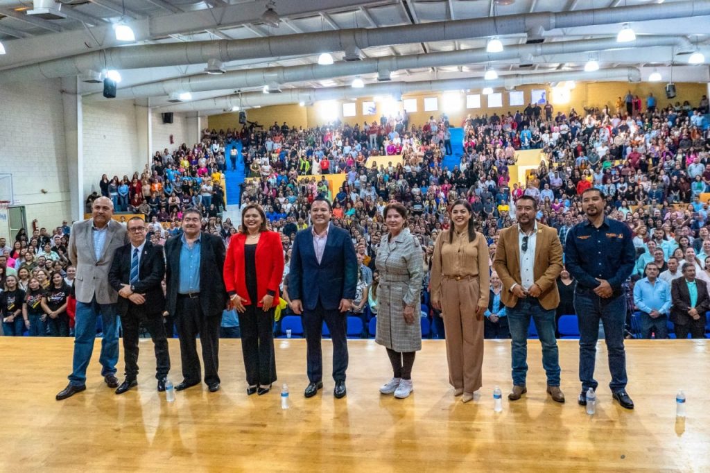 La alcaldesa de Meoqui, Miriam Soto, estuvo presente en el Encuentro Dialógico para Favorecer la Implementación de la Nueva Escuela Mexicana, realizado en la Secundaria Técnica 52 de la ciudad de Delicias, al cual, acudieron más de mil docentes de Meoqui y la región, con el objetivo de conocer el trabajo que se realiza y la explicación por parte de los expertos de este modelo educativo.