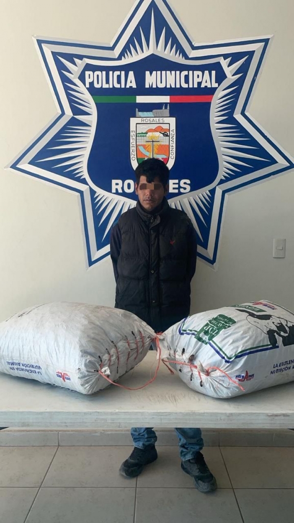 Rosales.- Durante un recorrido preventivo en la cabecera municipal de Rosales, agentes de la Dirección de Seguridad Pública detuvieron a un hombre en posesión de aproximadamente 70 kilogramos de nuez sin documentación de origen legal.