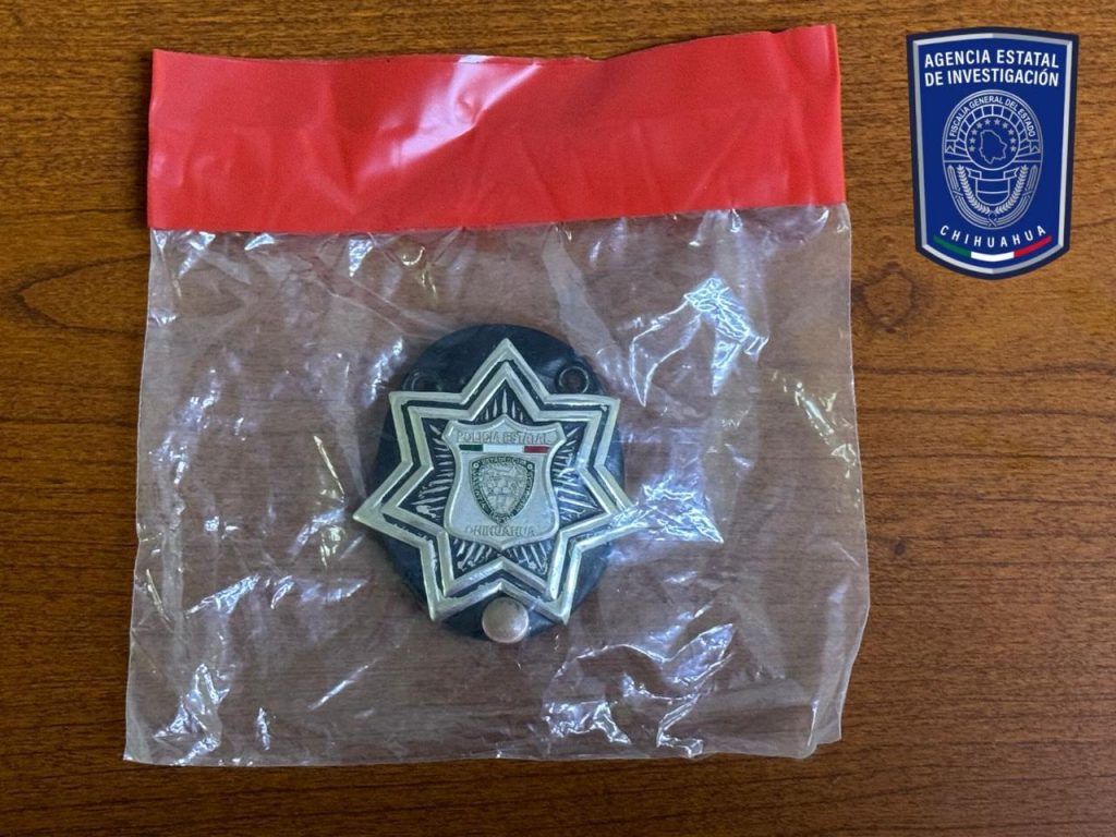 – Placa metálica policial con porta placa de color negro en forma de estrella con la leyenda “POLICIA ESTATAL CHIHUAHUA” y el Escudo del Estado de Chihuahua.