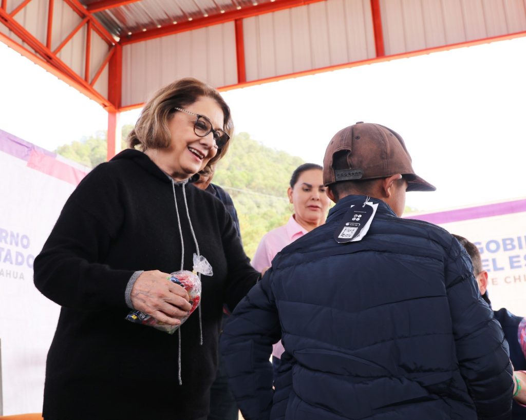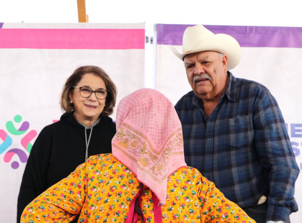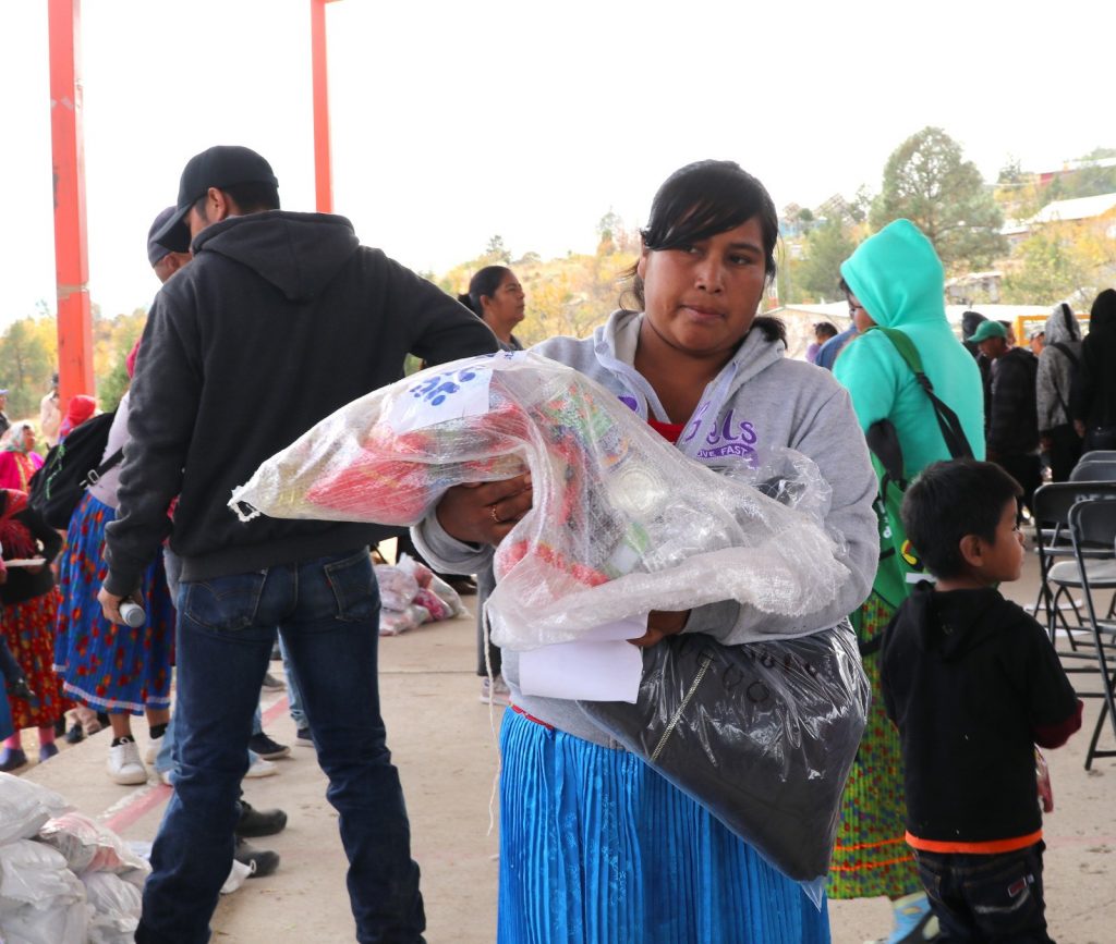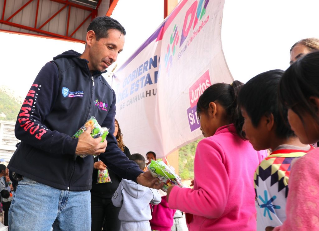El evento fue encabezado por la presidenta del DIF Estatal, María Eugenia Galván Antillón; el secretario Pueblos y Comunidades Indígenas (SPyCI), Enrique Rascón Carrillo y el alcalde Bartolo Moreno Bustillos, y a su término se distribuyeron paquetes alimenticios, cobijas y chamarras de la campaña “Juntos Sin Frío”, como un respaldo para las familias en esta temporada invernal.
