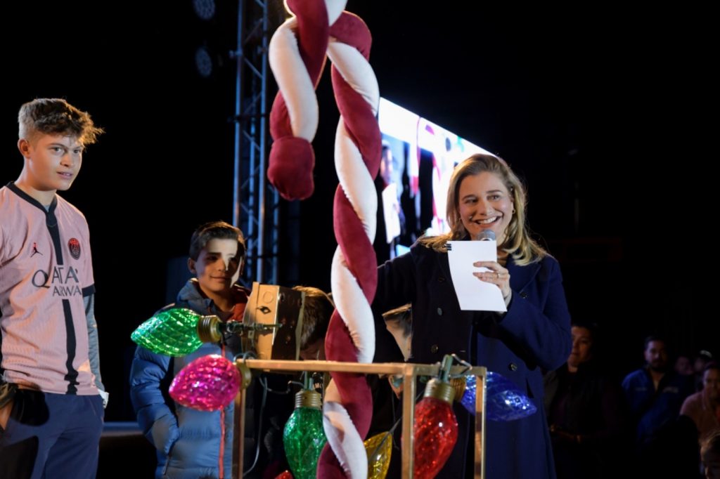 “Quiero agradecerle a las niñas y niños que me acompañan hoy aquí para que prendamos el árbol juntas y juntos”, comentó la Gobernadora previo a la cuenta regresiva.