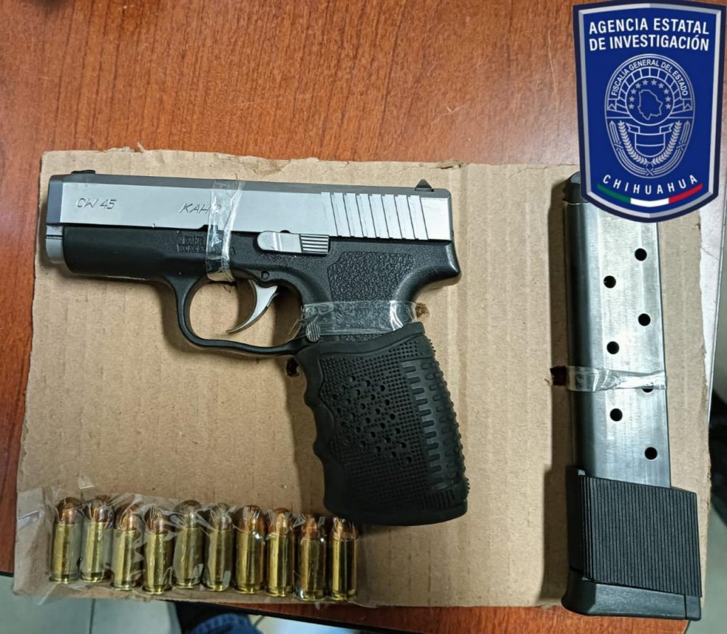 Por medio de comandos verbales, hicieron que el conductor identificado como Jesús Manuel A. F., descendiera del automotor y tras una revisión corporal, entre sus pertenencias se le encontraron dos envoltorios de plástico que contenían 0.80 gramos de cocaína y una pistola tipo escuadra marca KAHR, calibre .45, abastecida con 10 cartuchos.