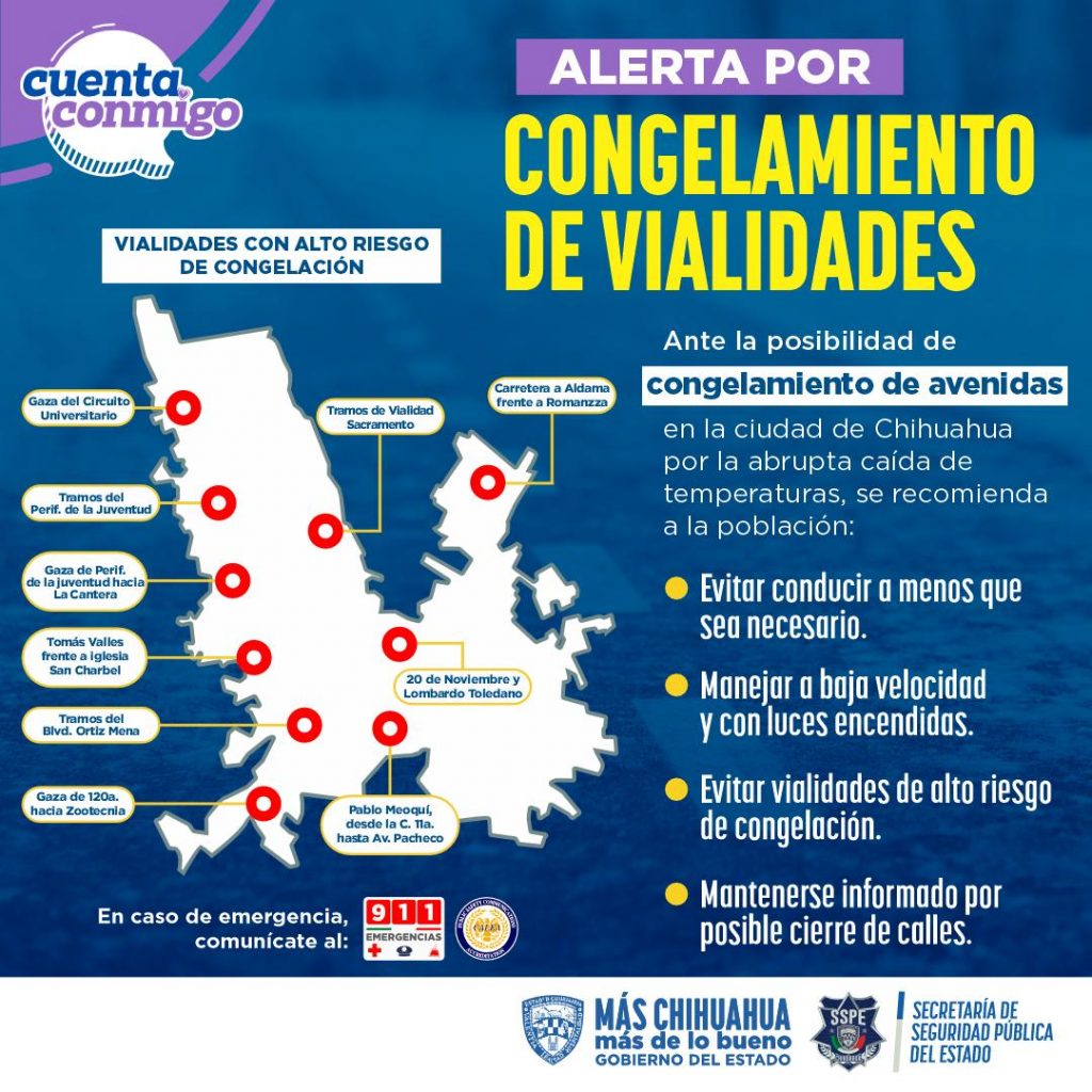 Entre las vialidades identificadas como puntos críticos por posible congelamiento se encuentran: