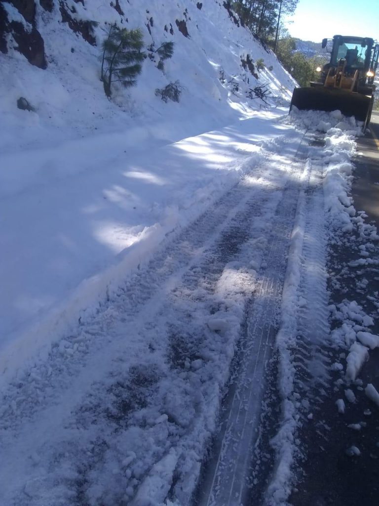 La Secretaría de Comunicaciones y Obras Públicas (SCOP), informó que la carretera San Juanito-Basaseachi fue abierta al tránsito vehicular, luego de realizados los trabajos para la remoción de la nieve acumulada en la carpeta asfáltica.