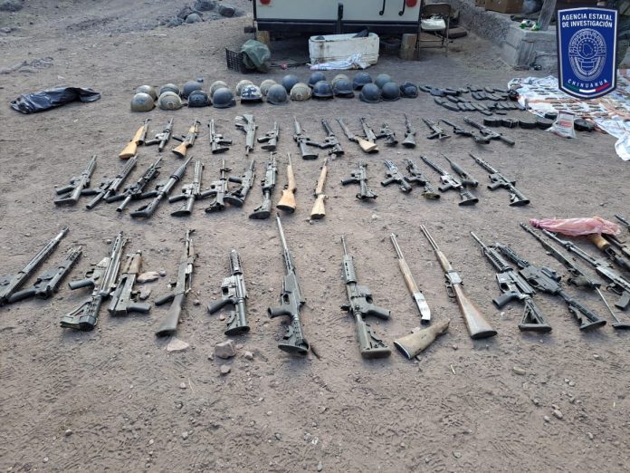 Hallaron arsenal que incluía 60 armas de fuego, cientos de cartuchos útiles, cascos tácticos, cargadores, radios, chalecos tácticos