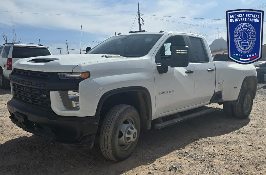 *Un vehículo de la Marca Chevrolet Duramax 6.6L, modelo 2023, en color blanco y negro, con placas del Estado de Nuevo México, el cual cuenta con reporte de robo en Albuquerque, Nuevo México.