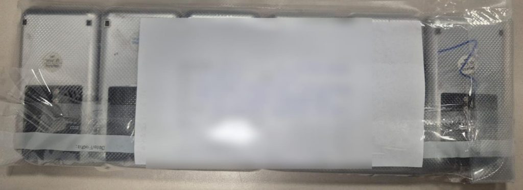 *Seis basculas grameras de color gris así como ocho paquetes de bolsas qué en su interior contienen diversas bolsas ziploc.