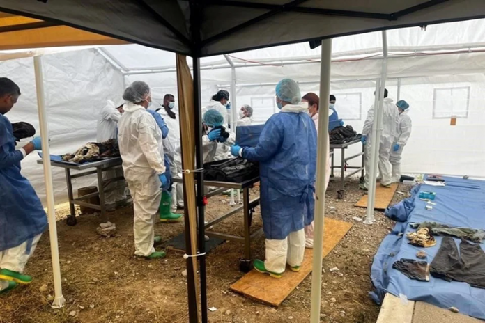 La Dirección General de Servicios Periciales de la FGE informó que, hasta este momento, se han analizado 96 cuerpos: de cuatro de ellos se recuperaron huellas dactilares para identificación que serán enviadas al Instituto Nacional Electoral (INE) para su cotejo y se trabaja en técnicas de hidratación con 15 más para recuperación de huellas.