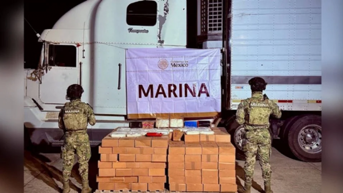 En un comunicado aparte, la SSPC, precisó que se aseguraron 339 cajas que contenían sustancias con características similares a la metanfetamina, “con un peso aproximado de 605 kilos y 21 paquetes con posible cocaína, fentanilo y otras sustancias, con un peso estimado de 21 kilos, los cuales venían ocultos en un doble fondo de la unidad de carga”.